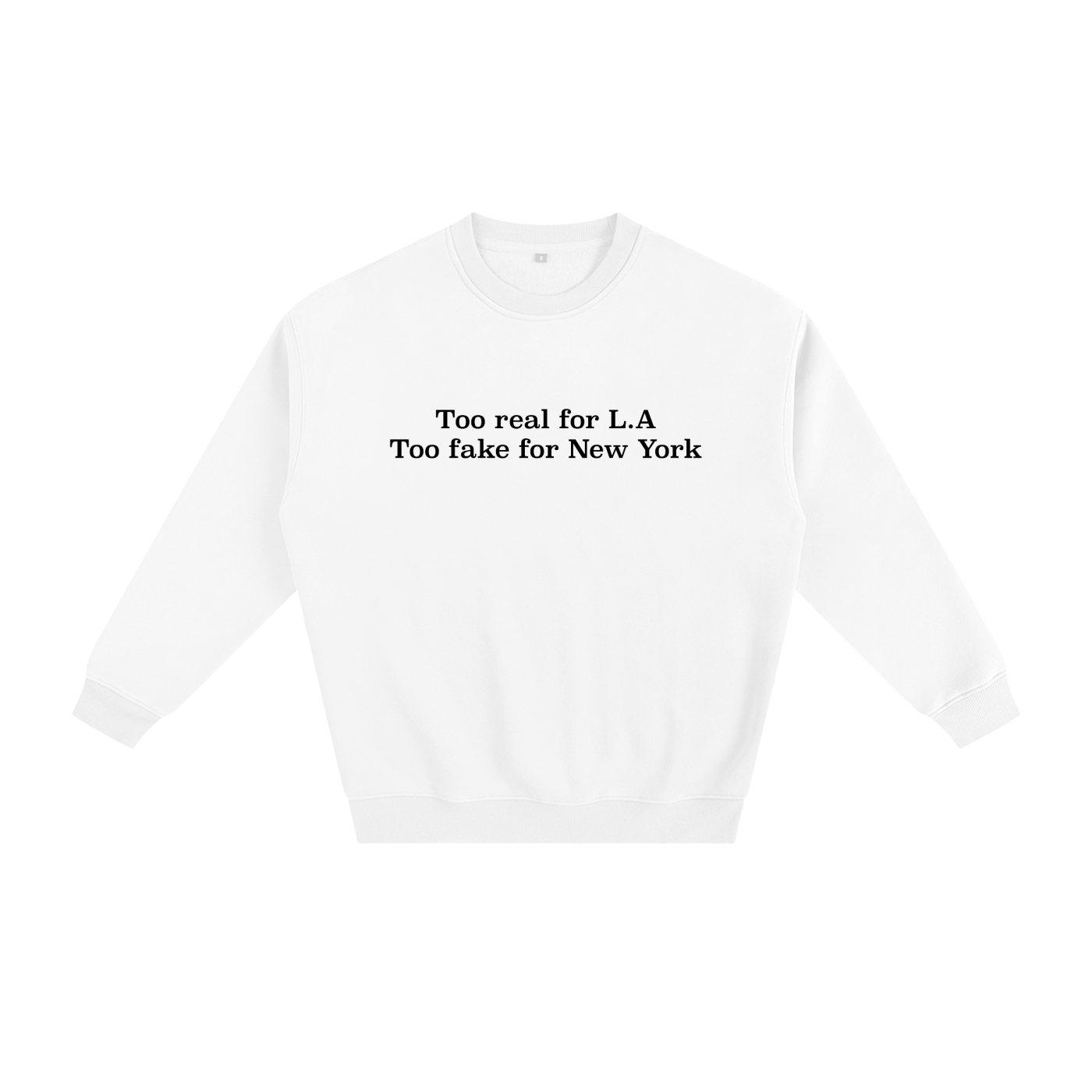 “Too Ugly for L.A., Too Dumb for New York” Graphic Crewneck Sweater