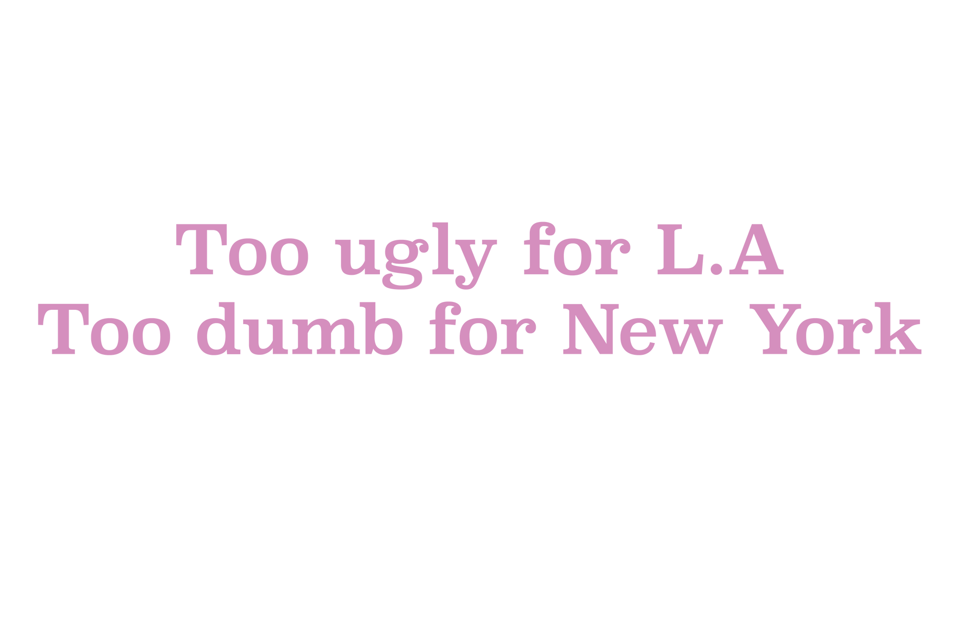 This black ceramic mug features the unapologetically iconic quote: “Too Ugly for LA, Too Dumb for NY.”